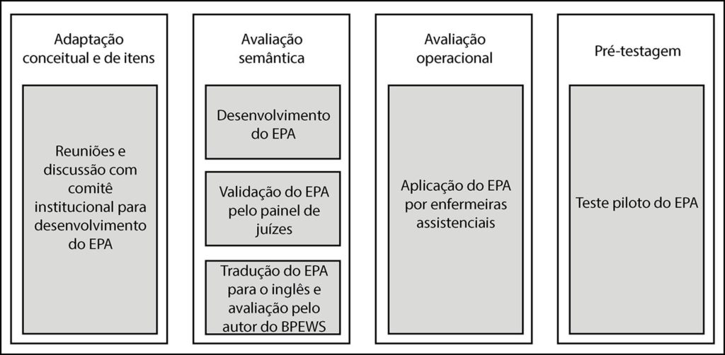 Estudo metodológico que envolveu um comitê institucional formado por 07 profissionais de saúde, um comitê de juízes composto por 12 profissionais das áreas de ensino, pesquisa, extensão e/ou assistência à saúde da criança e 20 crianças e adolescentes de 29 dias a 15 anos. Seguiram-se etapas de adaptação conceitual e de itens, avaliação semântica e operacional e pré-testagem. Utilizou-se o Excel 16.0 para processamento dos dados, técnica Delphi para validação de conteúdo e o Índice de Validade de Conteúdo para a mensuração da concordância.