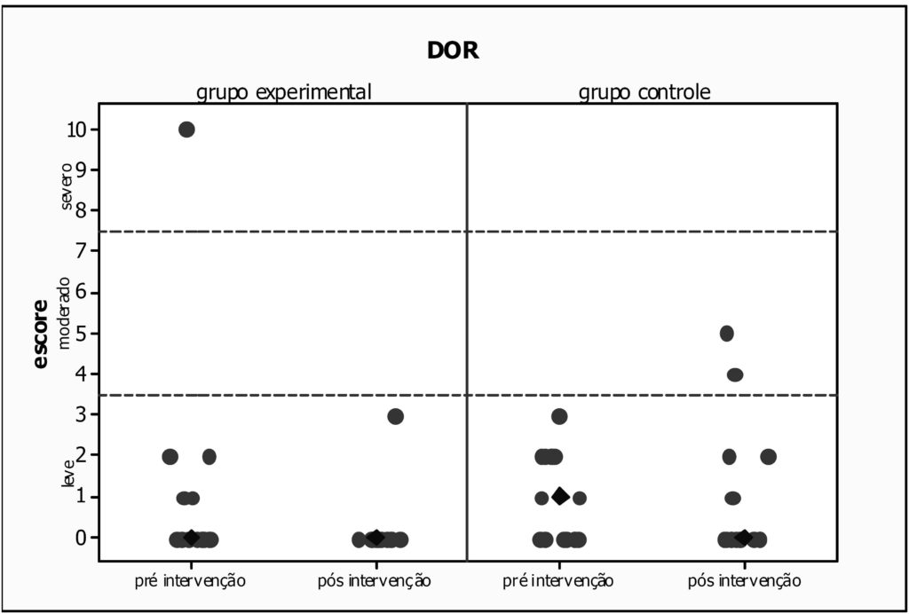 Não houve significância estatística entre os grupos em relação aos dados demográficos. Em relação aos parâmetros vitais e a intensidade dolorosa também não foram observadas diferenças estatísticas entre os dois grupos, cujos testes variaram de p=0,589 a p=0,999.