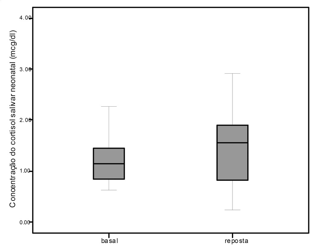 Não houve alteração da concentração média de cortisol neonatal resposta em relação ao basal (p=0.638).