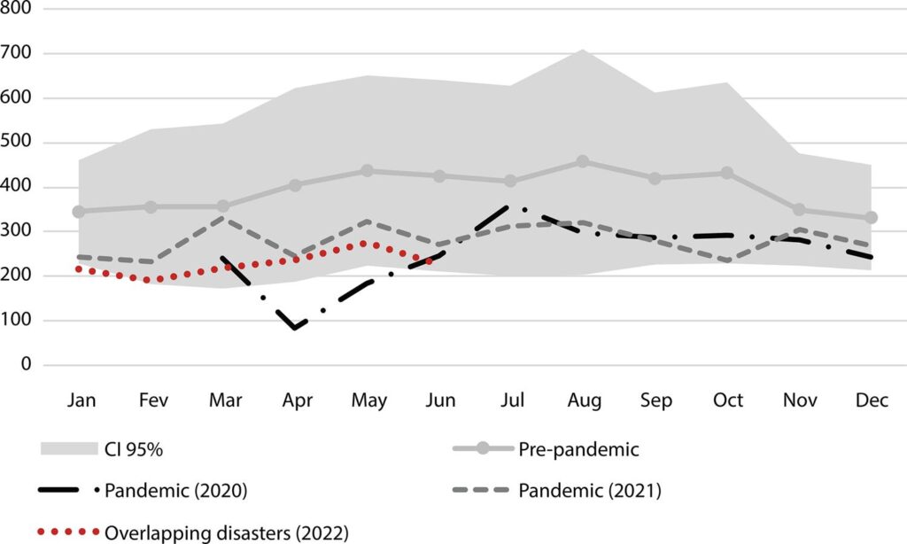 The overlapping climate disasters and the pandemic had an impact on childcare services, increasing barriers to children’s access to preventive health care during the pandemic.